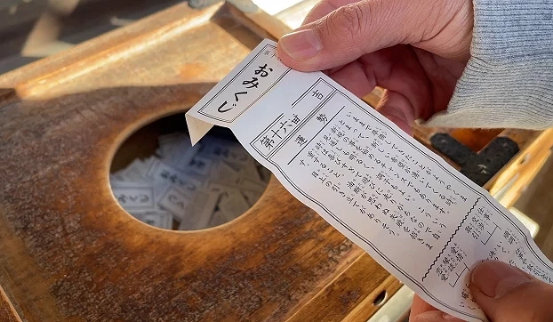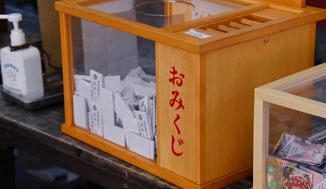 通常建议在完成参拜后再抽「御神签(おみくじ)」,意味着先向神明打招呼致意,再请求指引。抽签方式因神社而异,有些需前往授与所购买,由神职人员递给签筒或签纸;也有神社采自助式抽签,只需投入指定金额的赛钱至箱子后,即可自行取签。
