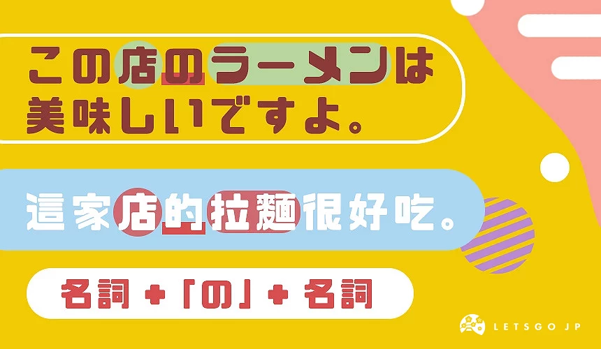 对不了解日文的人来说,「の」就等于中文的「的」或「之」,我们在路上也常会看到像「美味の拉面」、「必买の商品」或「推荐の景点」这些用法。甚至不少人在学了日文后,就算知道了「的」不完全等于「の」,还是会不小心说出「おいしいのラーメン」(美味的拉面)这样错误的日文!